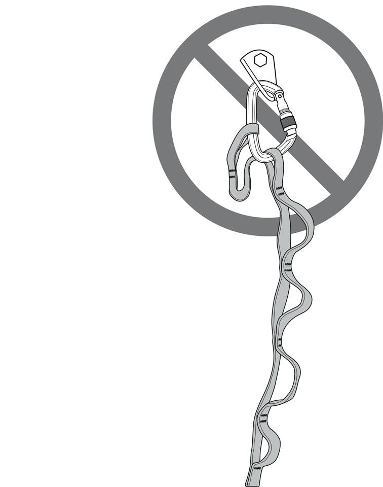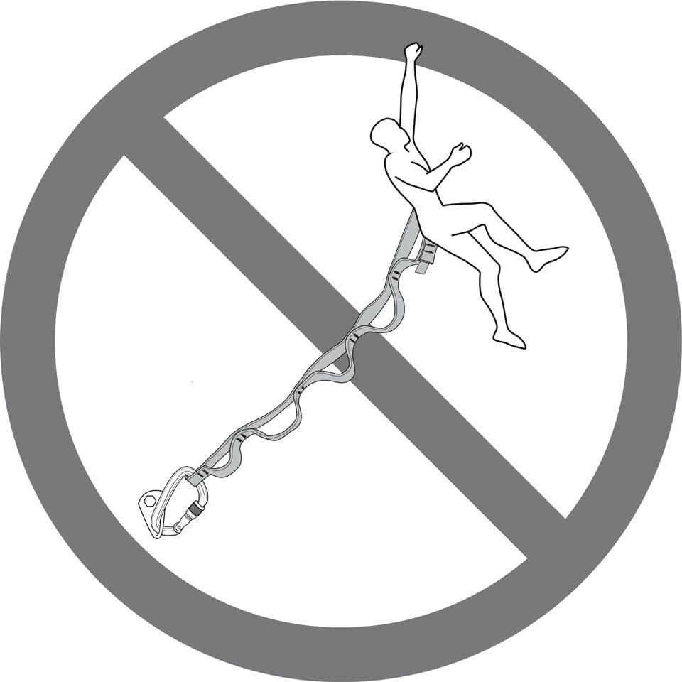 Warning: Improper use of Daisy Chains can cause severe shock loads. When clipped to an anchor (or other piece of gear) with a Daisy, never climb above the anchor (illustration 5). In the event of a fall, the Daisy will not stretch, resulting in a severe shock load to you, to the anchor and to all gear in the system. This can potentially injure you and can even cause your gear or anchor to fail.