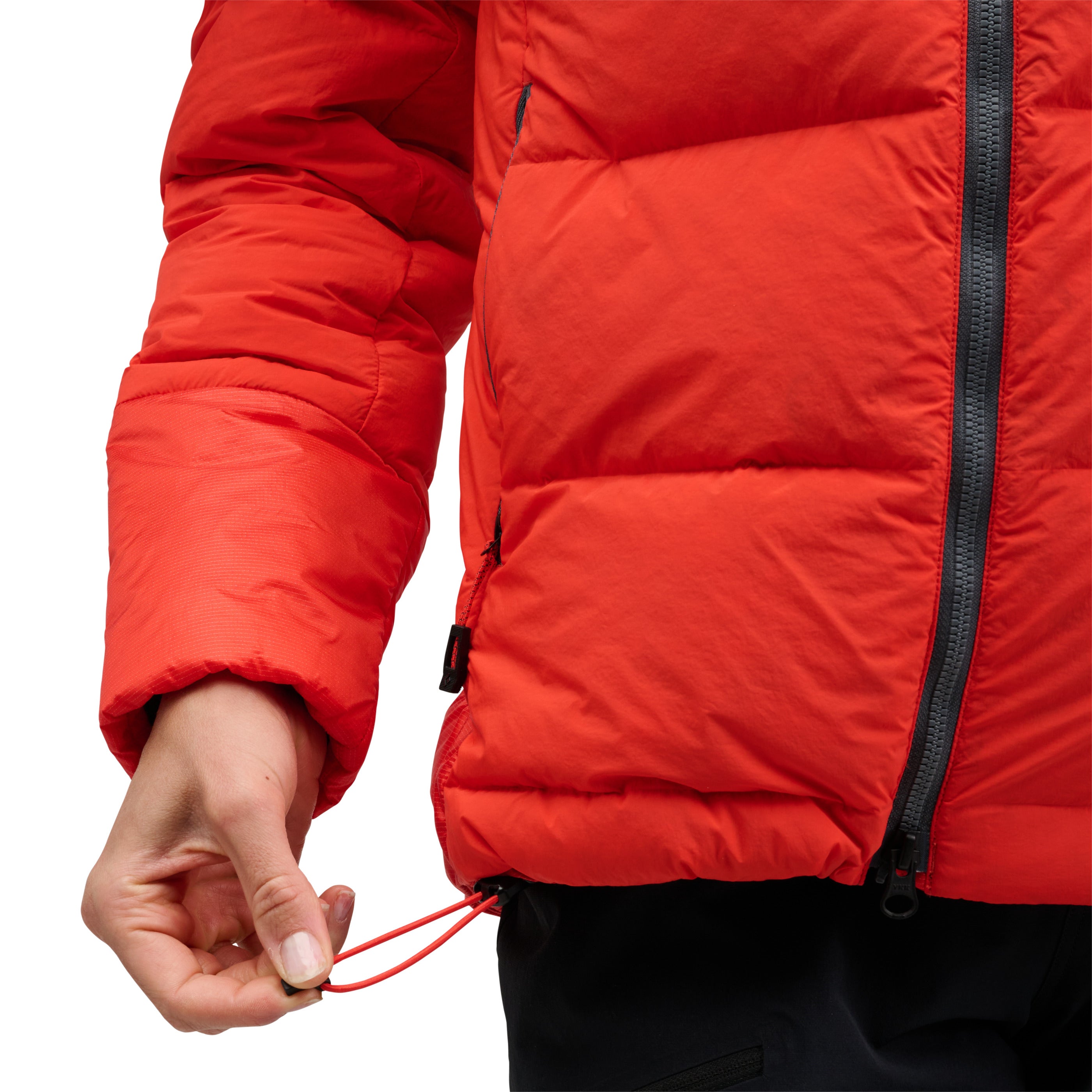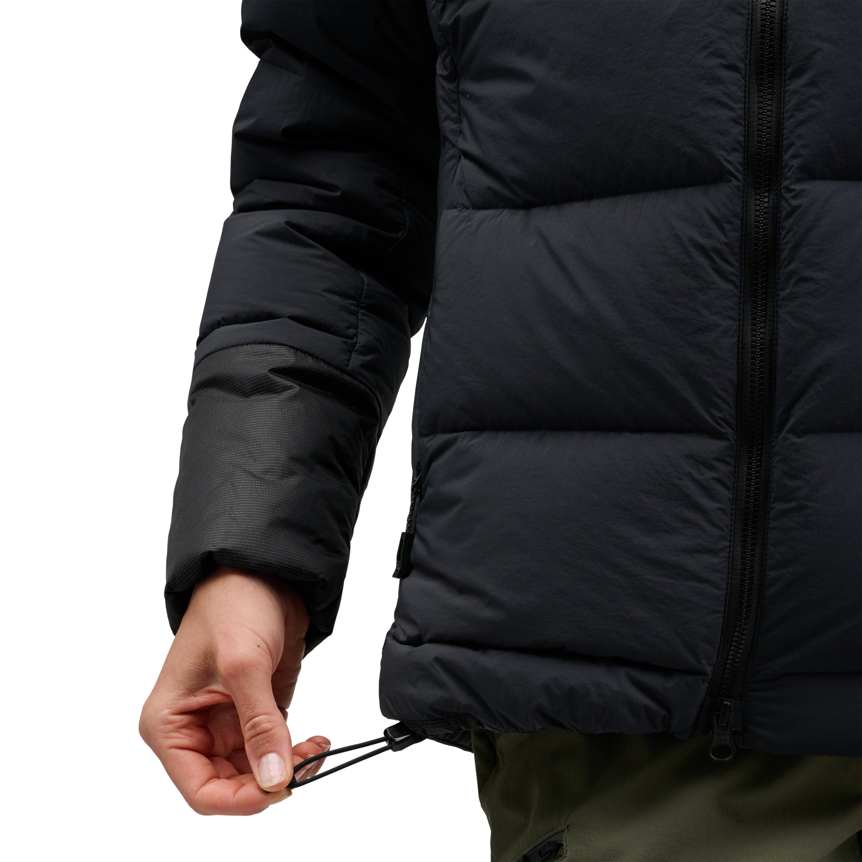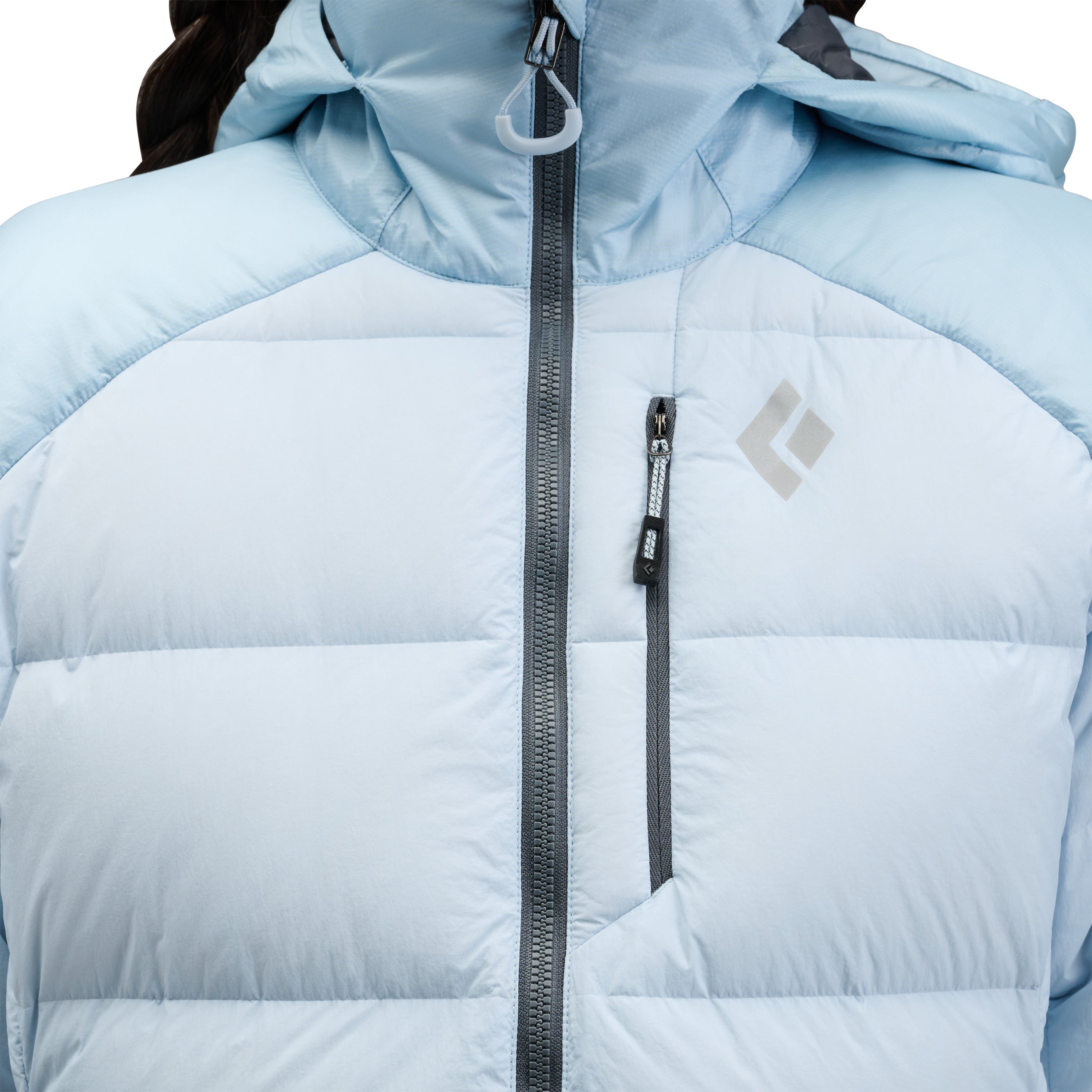 Hybridized with high-loft 800-fill down and 133-gram PrimaLoft® Gold Insulation Cross Core technology in shoulders, hood, and lower back for added protection, we’ve also shielded the synthetic zones with proprietary liquid crystal polymer ripstop shell fabric for ultimate durability. The helmet-compatible hood adds warmth in the elements and is adjustable to seal out the cold. A two-way front zipper allows easy access to your belay device. Oversized hand, chest, and internal drop pockets store gloves, water bottles, and other essentials while on mountain missions.