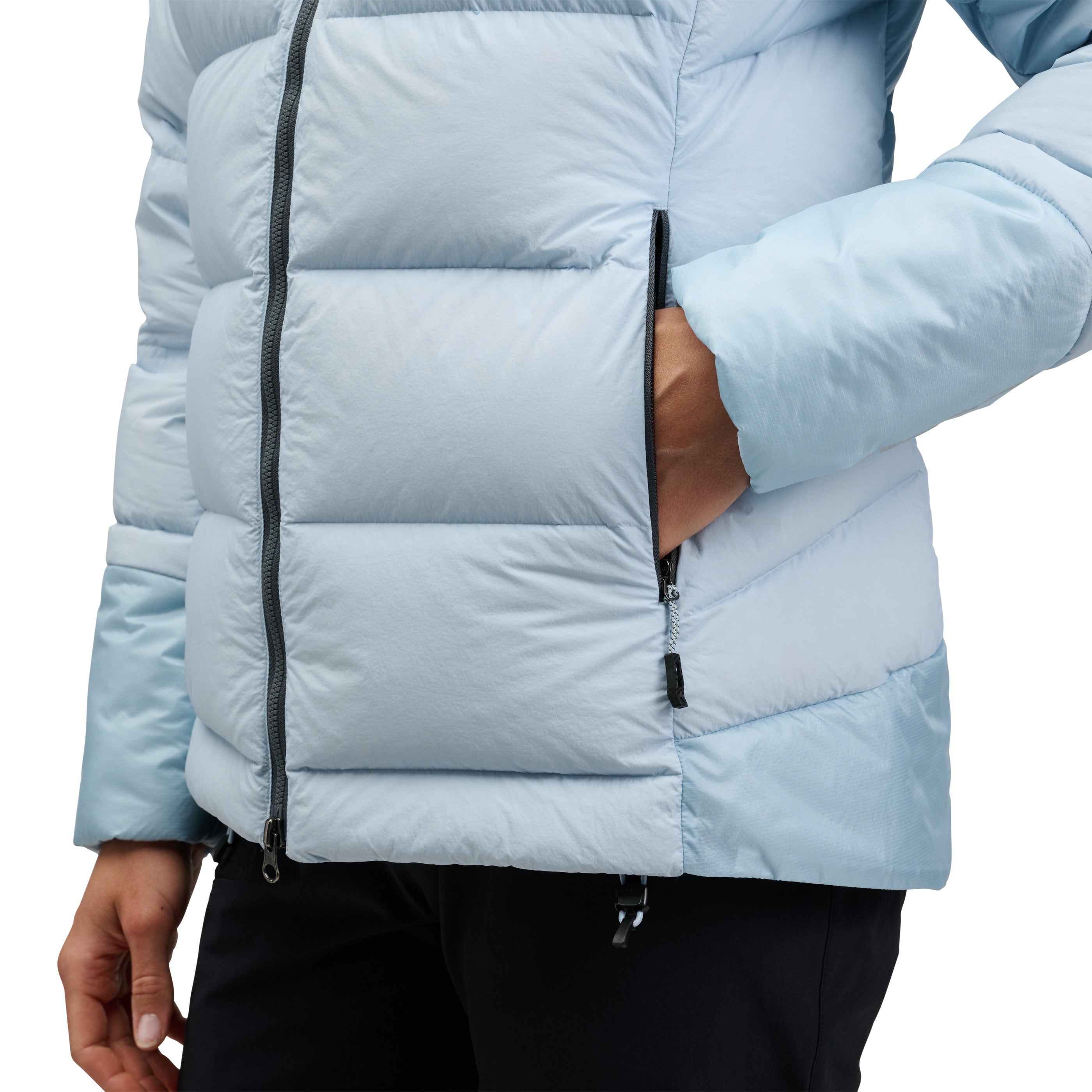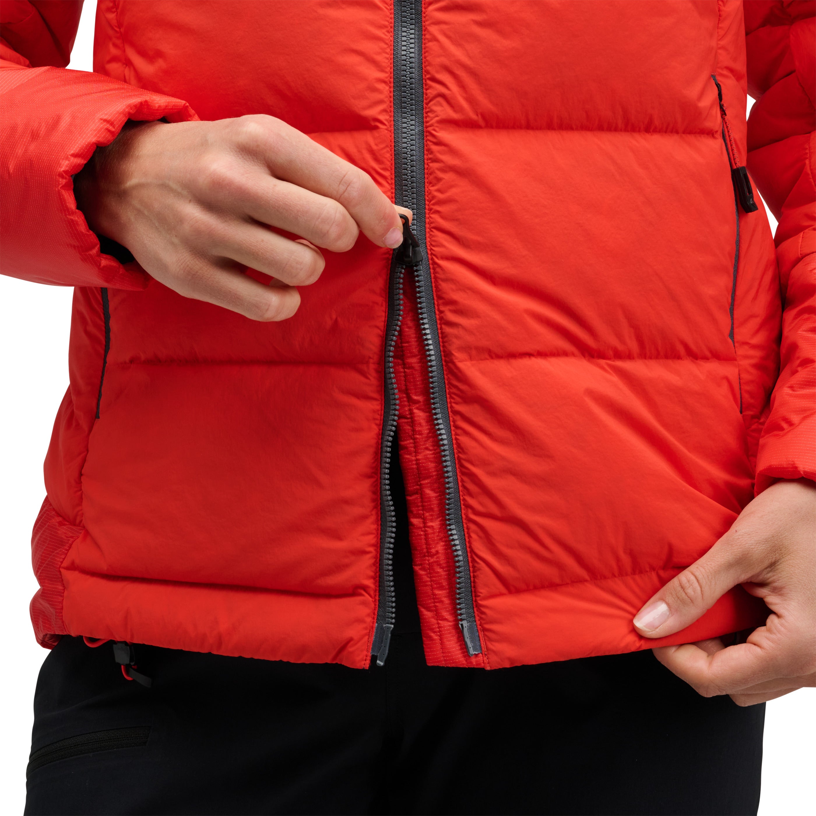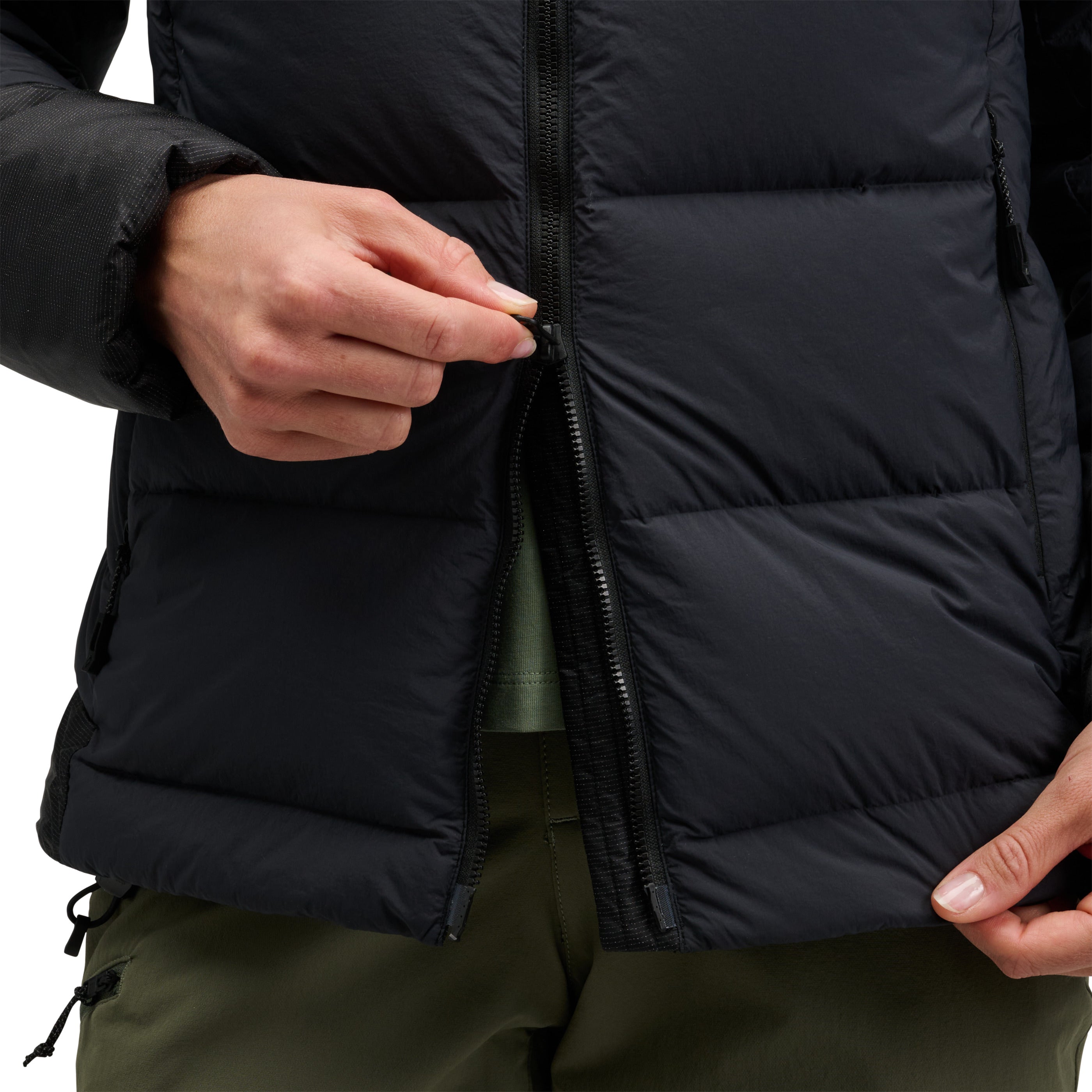 Hybridized with high-loft 800-fill down and 133-gram PrimaLoft® Gold Insulation Cross Core technology in shoulders, hood, and lower back for added protection, we’ve also shielded the synthetic zones with proprietary liquid crystal polymer ripstop shell fabric for ultimate durability. The helmet-compatible hood adds warmth in the elements and is adjustable to seal out the cold. A two-way front zipper allows easy access to your belay device. Oversized hand, chest, and internal drop pockets store gloves, water bottles, and other essentials while on mountain missions.