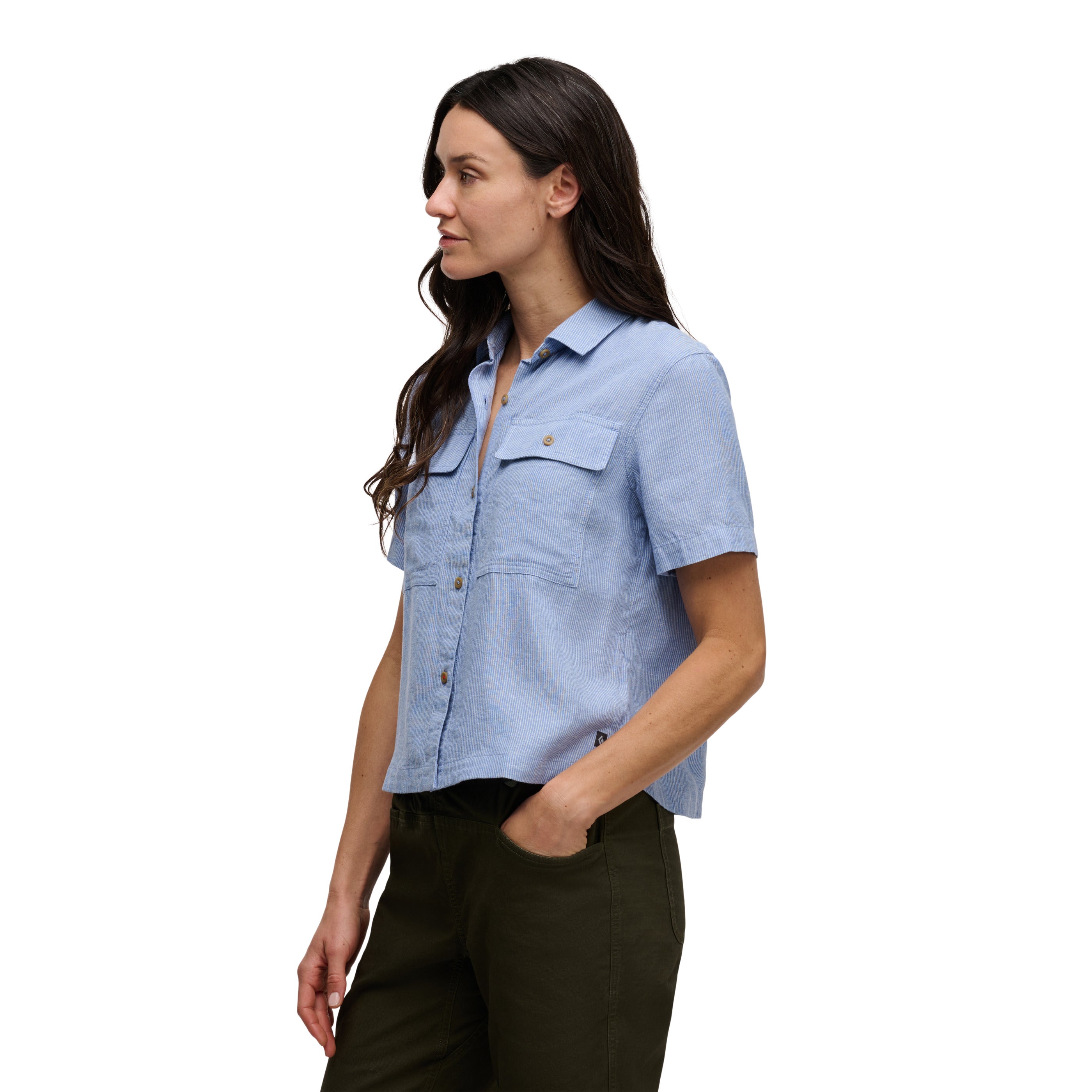 Ob auf Reisen, beim Campen, im Büro oder in der Stadt – das Scenic Route Shirt ist in jeder Situation eine gute Wahl. Aus einer Mischung aus Hanf und Tencel gefertigt, ist es bei warmem Wetter luftig und leicht. Der halbrunde Saum sorgt für einen zeitlosen Look. In den beiden Brusttaschen mit Druckknopfverschluss lassen sich Sonnenbrillen, Schlüssel und andere kleine Gegenstände verstauen.