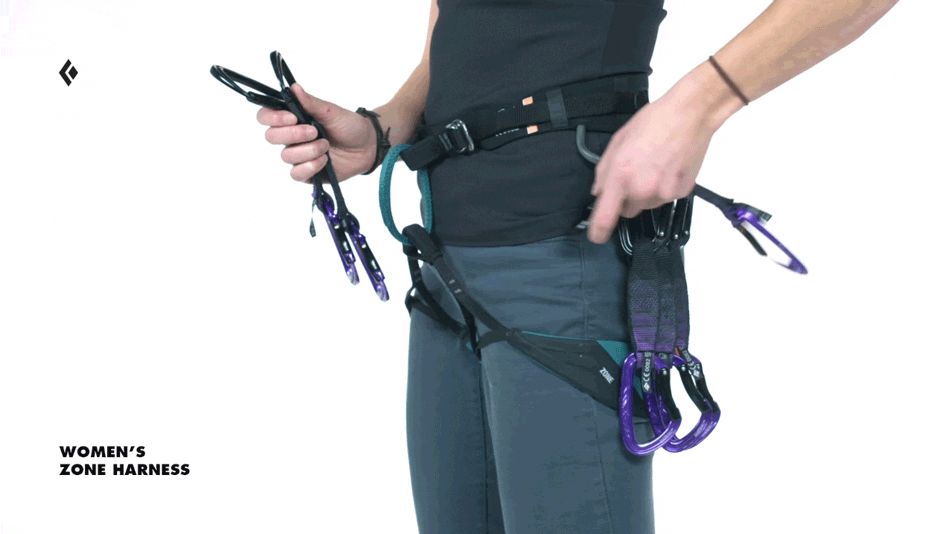 “C'est toujours mieux de monter ton rack avec les gates tournées vers l'extérieur, parce qu'elles reposent plus à plat sur tes hanches et il y a moins de chances qu'elles se retournent sur ta gear loop,” dit Sonnie.
