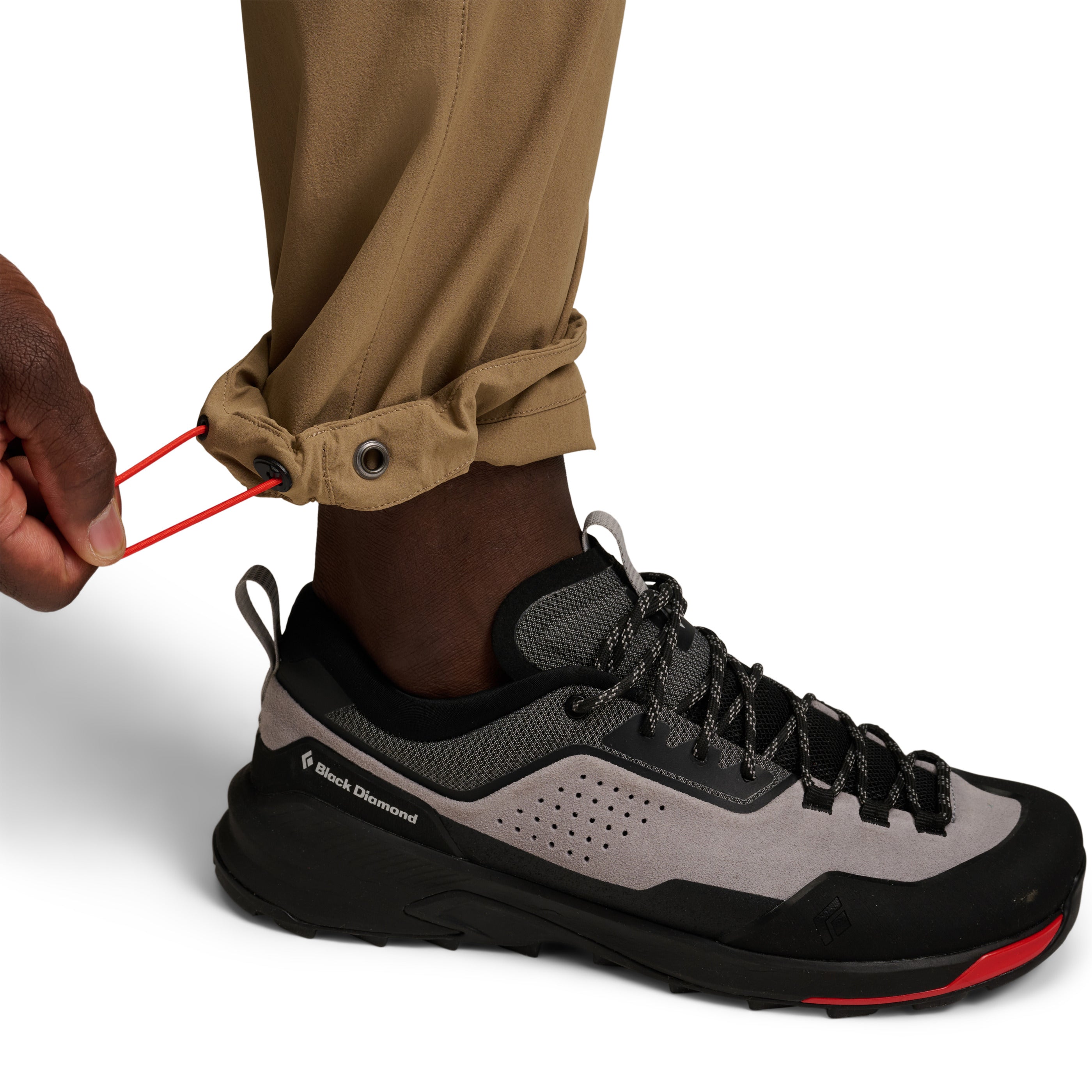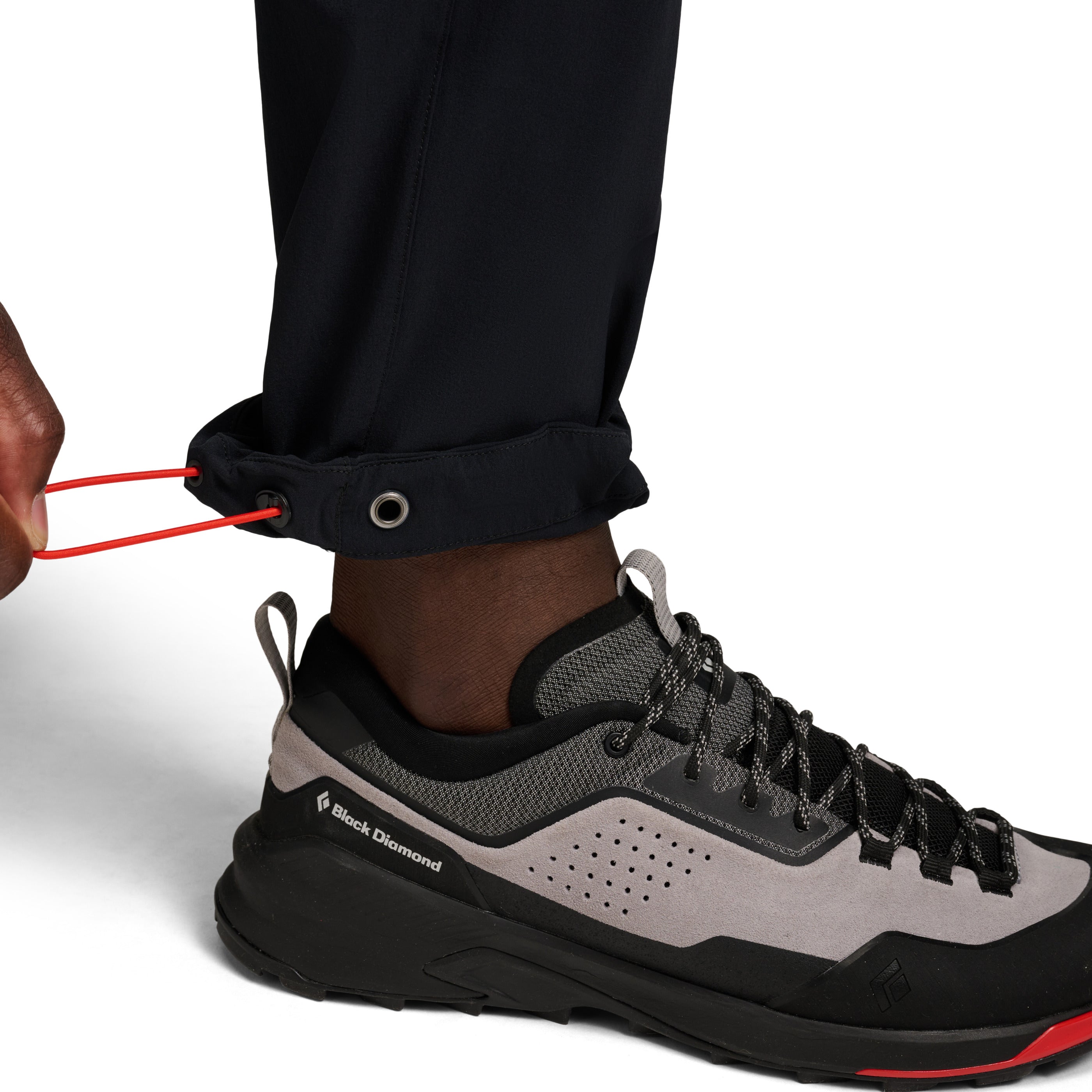 We’ve kept the same well-liked single-weave, four-way stretch fabric, but refined the fit and updated the pocketing and belt construction. They’re light and stretchy and can be worn on multi-day wall missions, all-day routes, and adventures that take you deep into the backcountry. A DWR treatment on the fabric protects against light precip and low-profile zip pockets hold the essentials. Fit can be finetuned with cordlock adjustable hems and an easy-to-adjust integrated webbing belt.